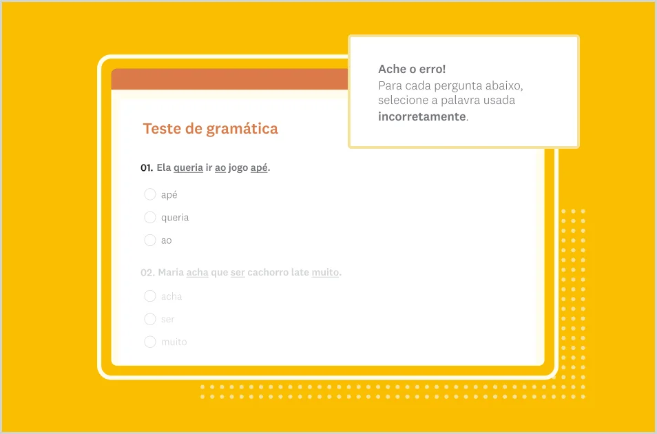Teste conhecimentos, habilidades e muito mais com nosso criador de testes online gratuito da SurveyMonkey. É gratuito!